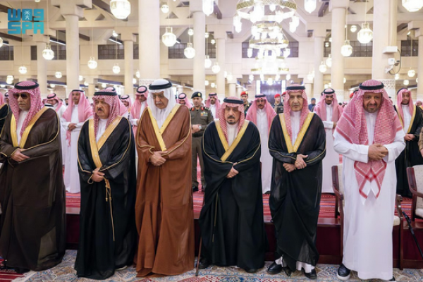 أمير الرياض يؤدي صلاة الميت على الأميرة نوره بنت عبدالعزيز بجامع الإمام تركي بن عبدالله
