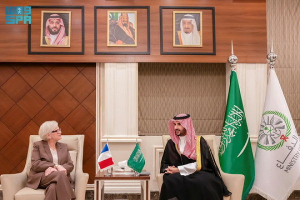 وزير الدفاع يبحث مع وزيرة القوات المسلحة الفرنسية تعزيز التعاون وإدانة الاعتداءات الإيرانية على المملكة