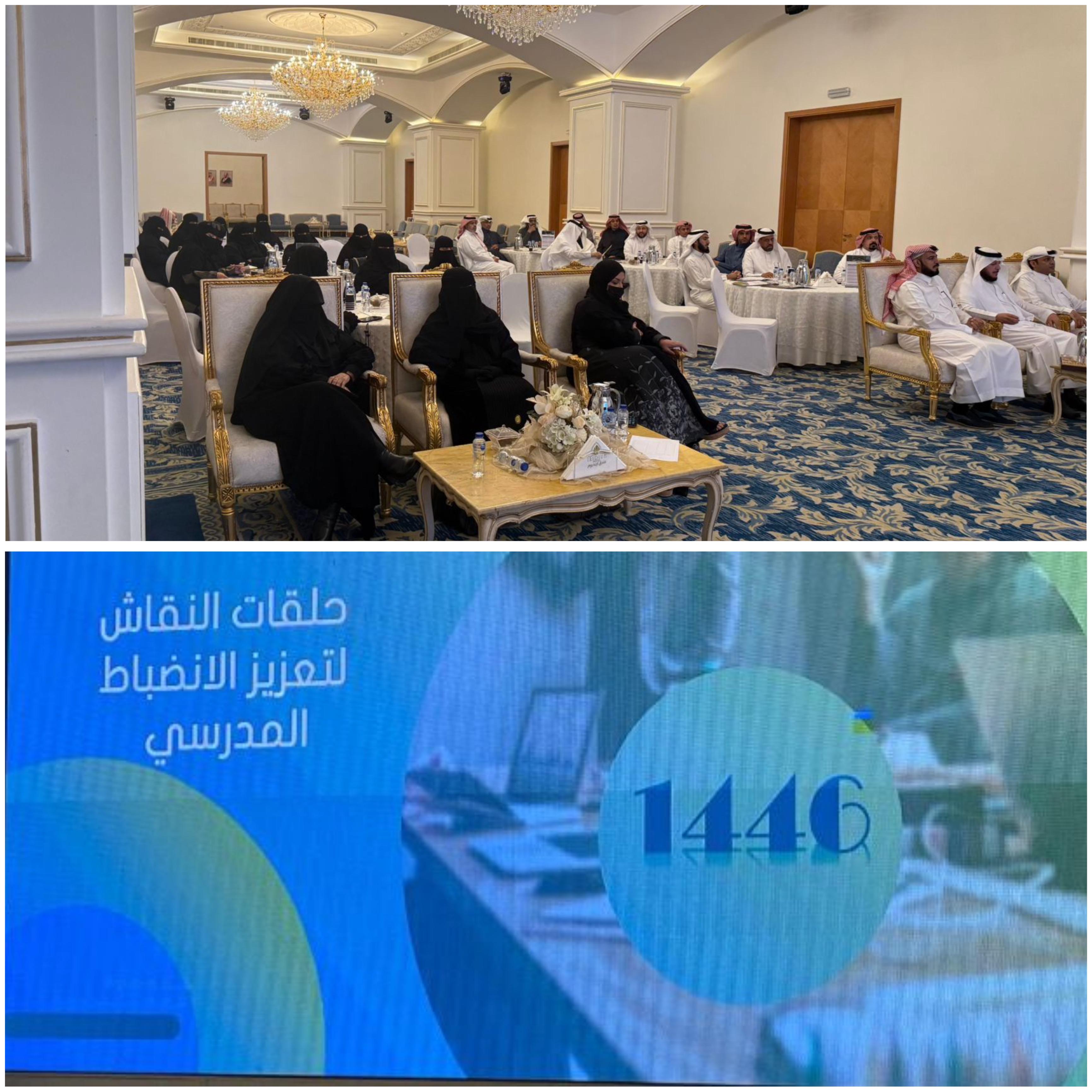في كلمته التي استفتح بها حلقة النقاش والتي أقامتها الإدارة صباح اليوم الاثنين، لتعزيز وتحقيق الانضباط المدرسي، وبمشاركة مجموعة من مشرفي ومشرفات و مديري ومديرات المدارس .