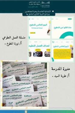 الابتدائية الخامسة ببحرة المجاهدين بتعليم مكة تفعل البرنامج التوعوي " اليوم العالمي للتطوع"