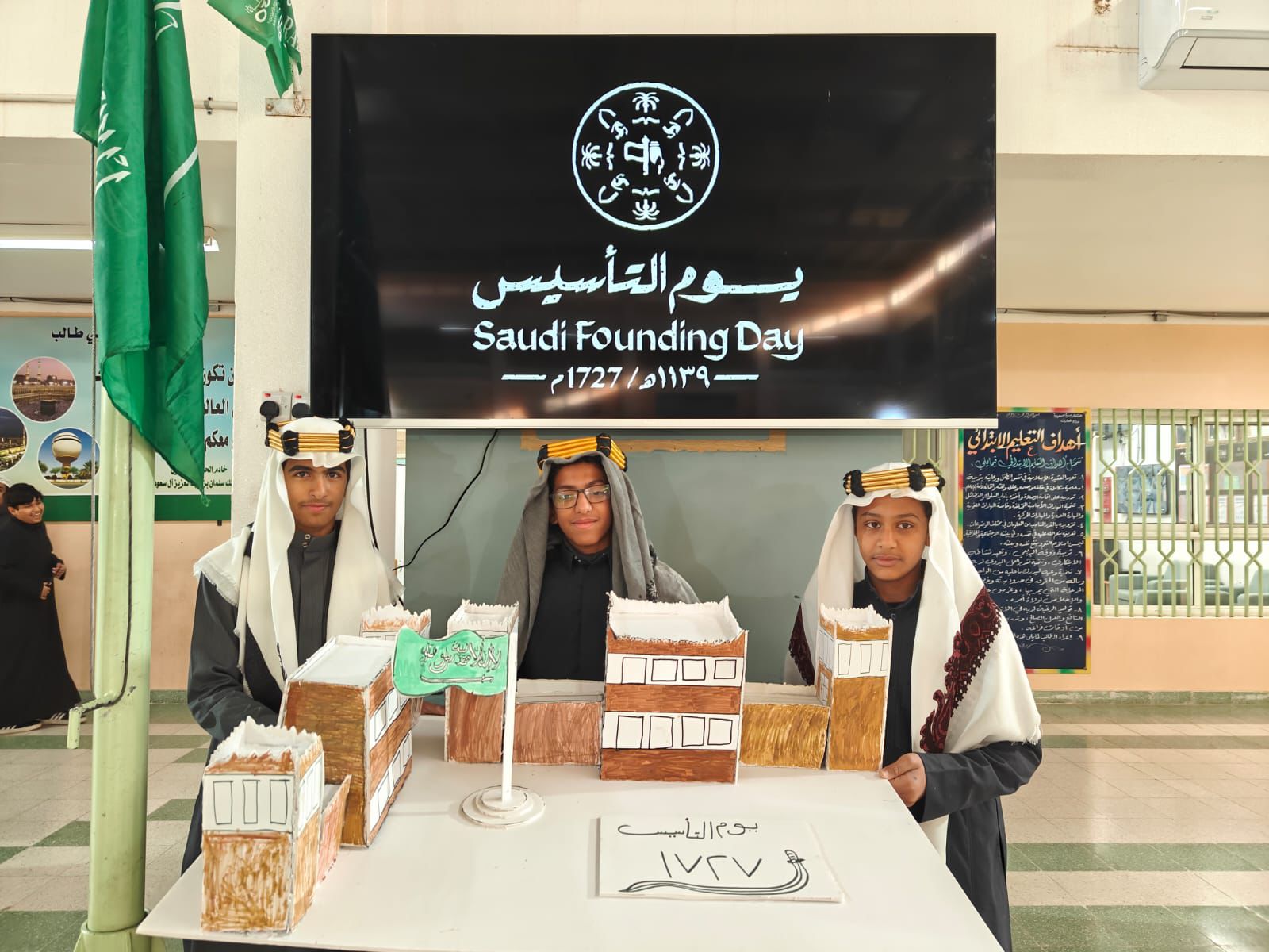 بالإضافة إلى ذلك، تم تنظيم معارض فنية وعروض مرئية مخصصة بهذه المناسبة، مما أضفى لمسة من الإبداع والجمال على الاحتفال. هذه الفعاليات تهدف إلى تعزيز الهوية الوطنية والثقافية للطلاب، وتعريفهم بالتاريخ والتراث السعودي.