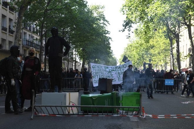 ووفقا لـ"رويترز"، قالت الشرطة "إن التجمعات كانت سلمية في معظمها، لكنها تدخلت في باريس بعد أن حاول فوضويون من حركة (الكتلة السوداء) إقامة حاجز في شارع بالقرب من ميدان لا ريبوبليك. كما تعرض مطعم ووكالة عقارات في ساحة ليون بلوم للنهب، وتحطمت نوافذهما واشتعلت النيران في صناديق القمامة".