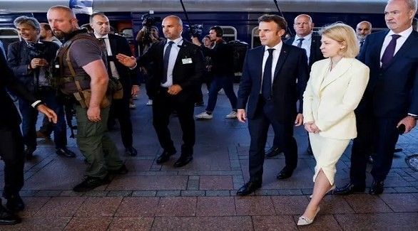ووصل ماكرون اليوم الخميس إلى كييف، على متن قطار، مع المستشار الألماني أولاف شولتس، ورئيس الوزراء الإيطالي ماريو دراغي.