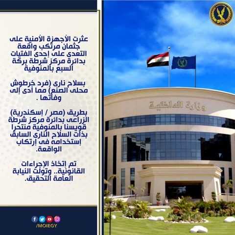 " الداخلية المصرية" تؤكد انتحار المتهم بقتل طالبة المنوفية لرفضها الزواج منه