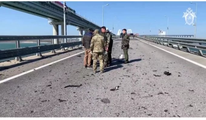 وأعلنت اللجنة الوطنية لمكافحة الإرهاب، في وقت سابق، أنه في صباح يوم 8 تشرين الأول/أكتوبر الجاري، انفجرت شاحنة فوق جسر القرم، تسببت في اندلاع حريق في 7 خزانات وقود كانت في مؤخرة أحد القطارات التي تمر على الجانب الآخر من الجسر.