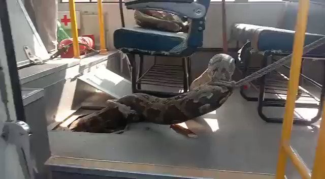 ويظهر مقطع فيديو نشره موقع "إنديان إكسبريس"، ثعبان بوزن 80 كيلوغراما، عالقة في حافلة مدرسة بولاية أوتار براديش. وعلّقت مسؤولة خدمة الغابات الهندية، سوزانتا ناندا، على الفيديو قائلة: "يبدو الثعبان كما لو أنه الطالب الأكثر ترددا". ويتم سحب الثعبان من قبل رجل يحمل عصا، فيما كان متفرجون ينظرون من نوافذ الحافلة، وسط حالة من الذعر.