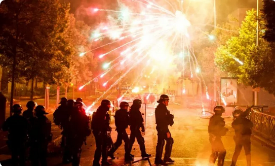 وهزت أعمال شغب شملت تخريب مقار إدارات عامة وعمليات نهب ومناوشات متفرقة ليل الخميس استمرت للساعات الأولى من صباح الجمعة مدنا كثيرة واقعة في منطقة باريس بعد توجيه تهمة القتل العمد وحبس الشرطي الذي أقدم على قتل الشاب نائل الذي كان يبلغ السابعة عشرة خلال عملية تدقيق مروري بعدما رفض التوقف الثلاثاء في نانتير قرب العاصمة الفرنسية.