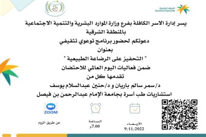 الدمام - فيصل العوهلي ضمن فعاليات اليوم العالمي للاحتضان و الذي يوافق يوم غد الأربعاء ٩ نوفمبر ٢٠٢٢م تنظم إدارة...