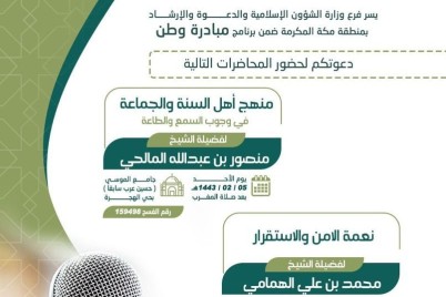 مكة المكرمة - هلال اليزيدي نظم فرع وزارة الشؤون الإسلامية والدعوة والإرشاد بمنطقة مكة المكرمة، محاضرة بعنوان: "منهج...