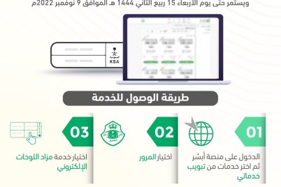 تعلن الإدارة العامة للمرور عن طرح مزاد اللوحات المميزة الإلكتروني غدًا الأحد، وذلك عبر منصة أبشر التي تمكّن الراغبين...