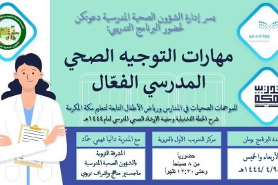 ضمن برامج التطوير المهني، نفذت الإدارة العامة للتعليم بمنطقة مكة المكرمة، ممثلة في إدارة الشؤون الصحية المدرسية، برنامجاً تدريبياً بعنوان...
