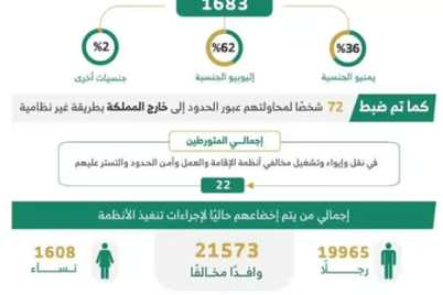 أسفرت الحملات الميدانية المشتركة لمتابعة وضبط مخالفي أنظمة الإقامة والعمل وأمن الحدود، التي نُفذت في مناطق المملكة كافة خلال الفترة...