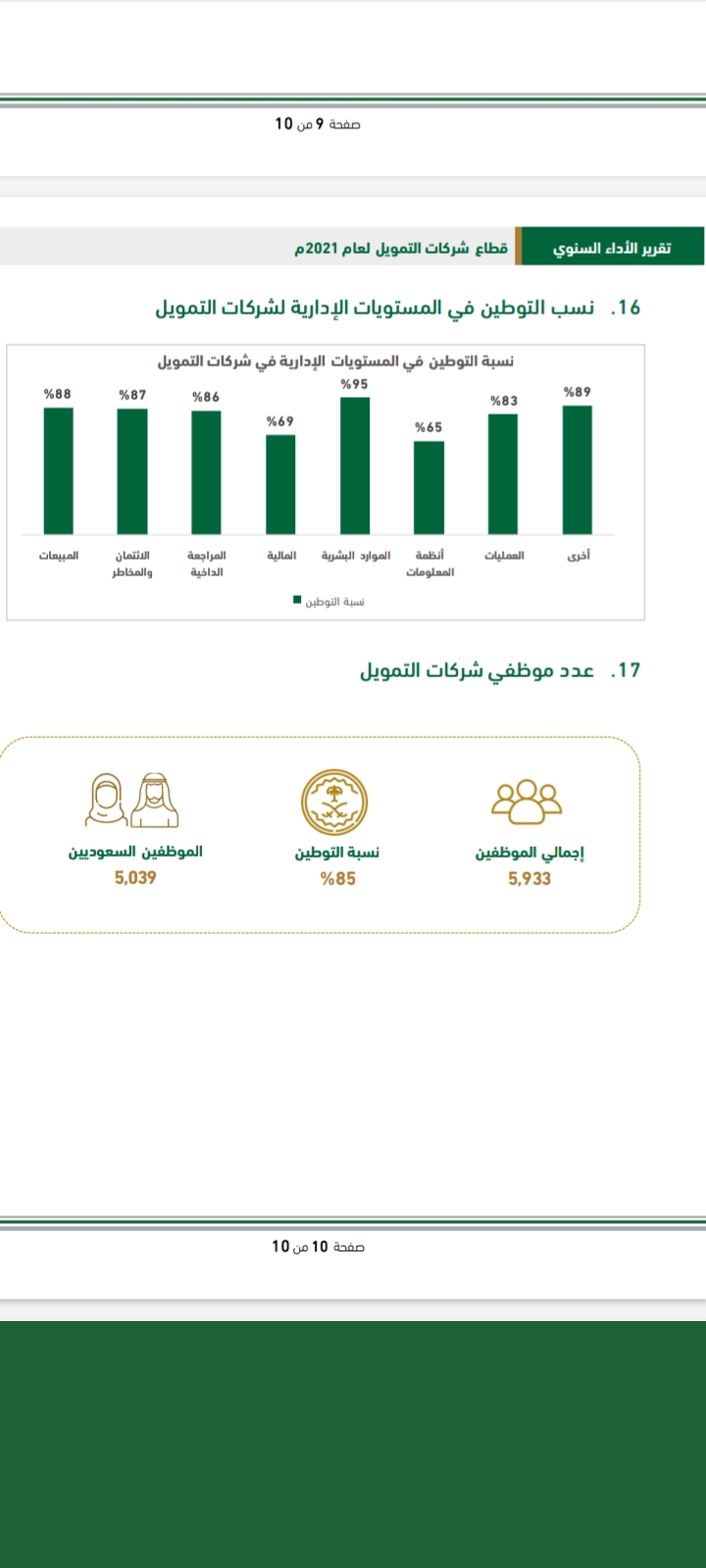 ويسلط التقرير الضوء على أبرز عناصر قائمة المركز المالي والدخل لقطاع شركات التمويل خلال عام 2021م، والمحفظة التمويلية للقطاع، والربحية ومؤشرات العائد، والرافعة المالية. كذلك يتضمن تصنيف المحفظة التمويلية للأفراد والمنشآت الصغيرة والمتوسطة ومتناهية الصغر، والقروض المتعثرة وتصنيفاتها، وحجم التمويلات الجديدة خلال الفترة، إلى جانب نسب السعودة في المستويات الإدارية، وعدد موظفي شركات التمويل. ويُمكن الاطلاع على تقرير قطاع التمويل لعام 2021م على موقع البنك المركزي.