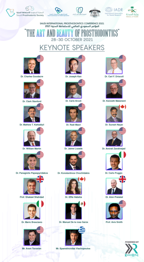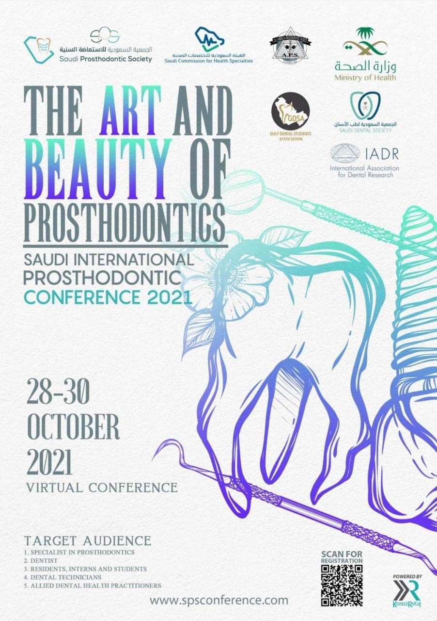 تقيم الجمعية السعودية للإستعاضة السنية مؤتمرها السعودي العالمي للإستعاضة السنية 2021  إفتراضيا بعنوان "فن وجمال التركيبات السنية" خلال الفترة 28-30 أكتوبر.