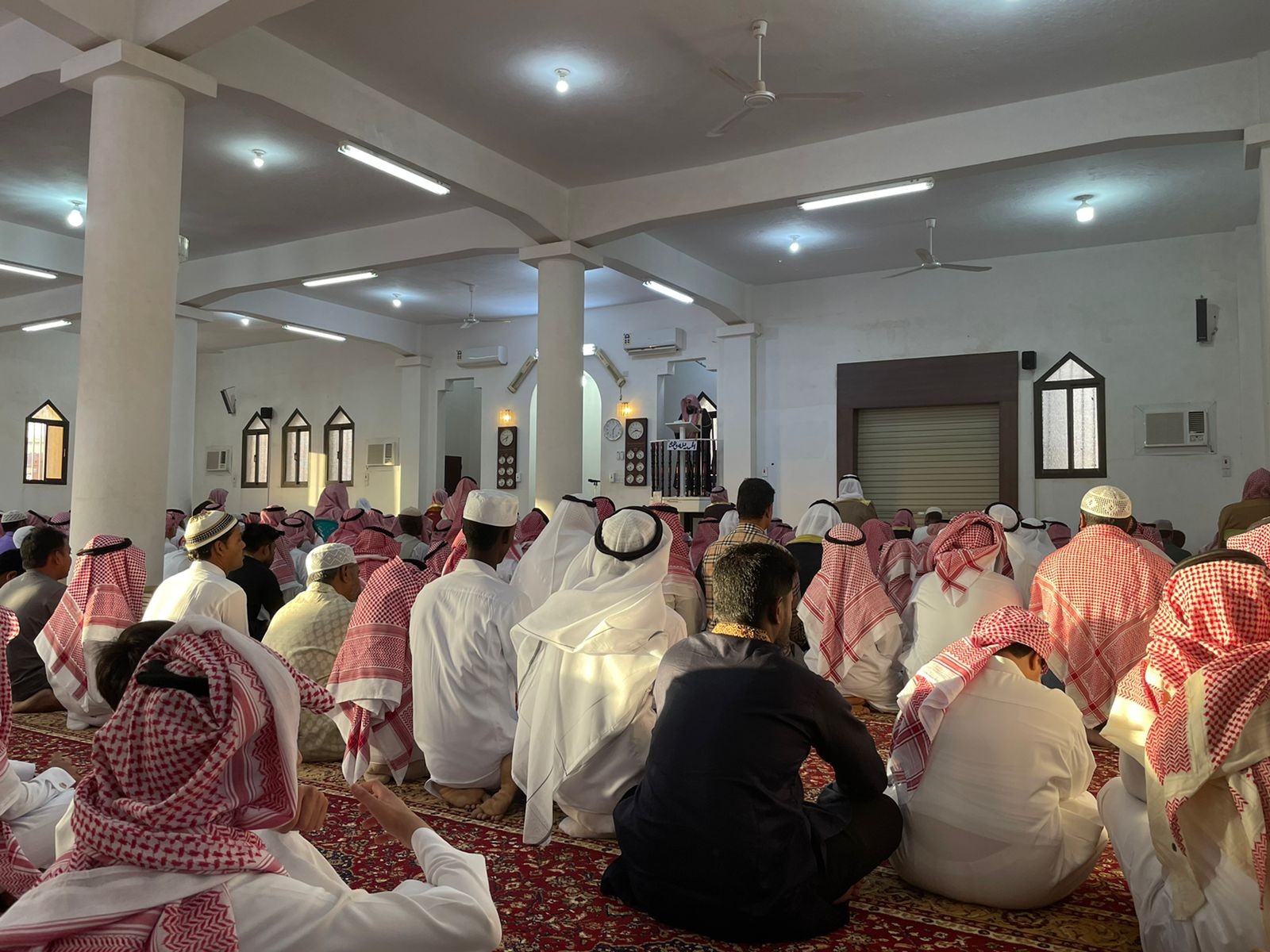 بهذا الجانب ، تحدث لنا العم حمد الشمري ، إنه من بعد أن تقام صلاة العيد في جامعنا القرية نقوم بأخذ بالسلام على أهالي قريتنا لكبار السن والصغار وزيارة الأقارب ، وبعد ذلك نقوم بالتجمع عند أحد بيوت القرية مشيرًا بأننا في كل عيد تكون وجبة الإفطار عند أحدنا.