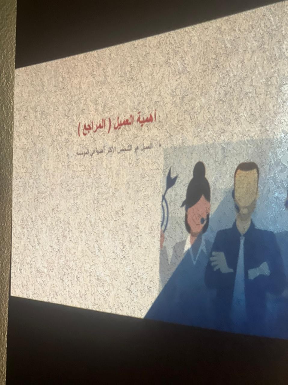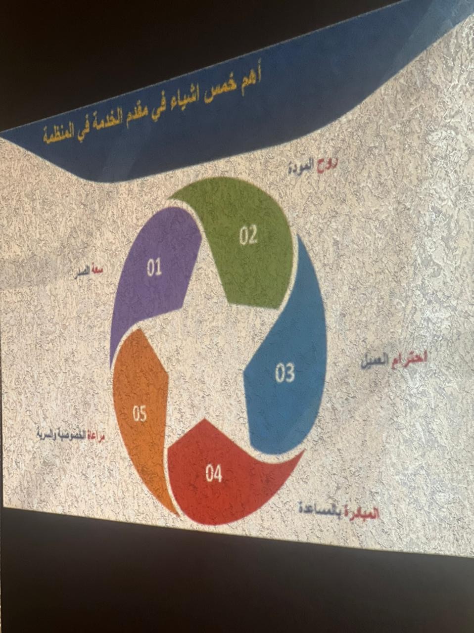 قدم المحاضره المدربة إ/حمده بواع العنزي حيث تناولت عدد من المحاور اهمها كيف تبني علاقه مهنيه ناجحه مع العملاء ودور الموظف اتجاه العميل واهم خمس اشياء في مقدم الخدمة في المنظمه وانماط المراجعين وكيفية التعامل معهم وصفات مقدم الخدمة في المنظمةومهارات مهمه في خدمة العملاءوكيف تكون موظف خدمه عملاء محترف وصفات الاتصال الناجح .