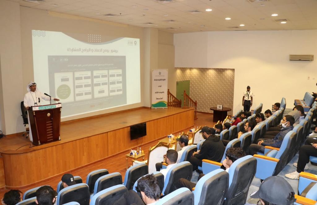 شارك مكتب عمل الباحة ممثلا بإدارة الرقابة وتطوير بيئة العمل بفرع وزارة الموارد البشرية والتنمية الاجتماعية بمنطقة الباحة  و بالتنسيق مع ادارة الكلية التقنية بالباحة عقدت ورشة عمل اشتملت على نبذه تعريفية عن نظام العمل وكذلك الحقوق والواجبات للعامل وصاحب العمل