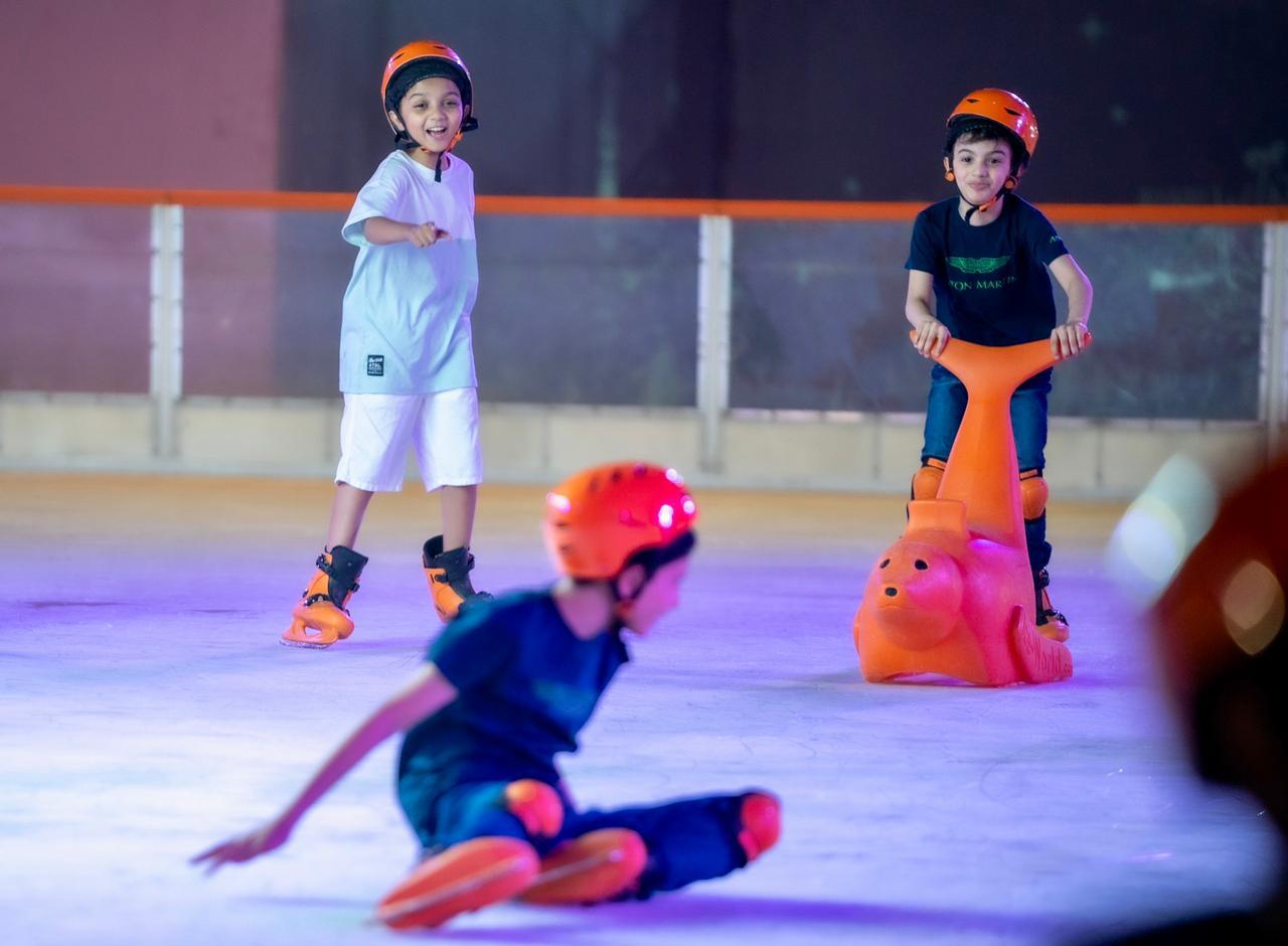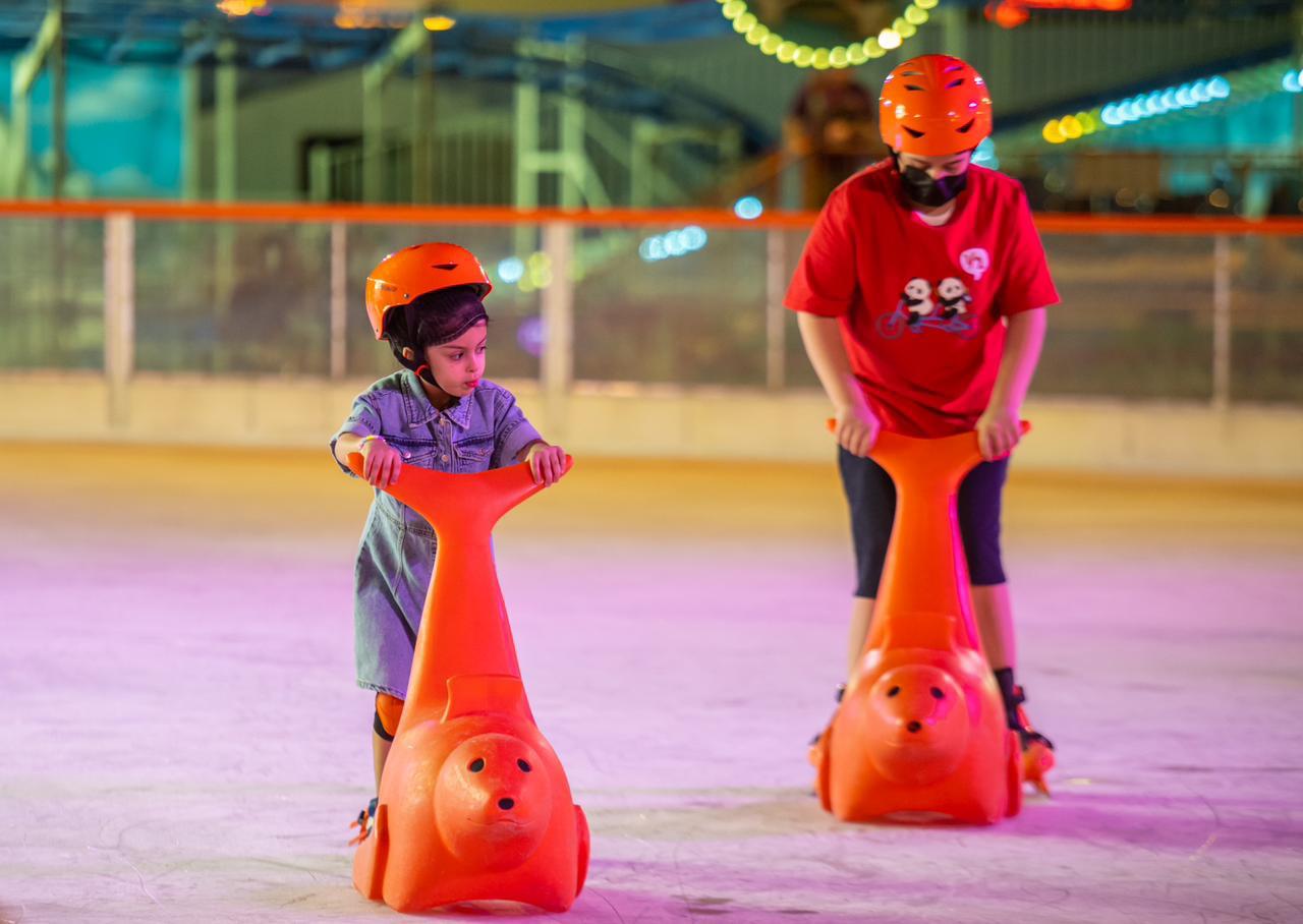 ومن خلال أكواخها المهيأة لتجهيز أكثر من 2250 متزلجًا يوميًّا يشرف فريق احترافي مهني على تزويد المتزلجين بالمعدات اللازمة للتزلج بأمان وسلامة، وكذلك إطلاعهم على التعليمات اللازمة لدخول الحلبة وأثناء اللعب فيها وعقب الانتهاء منها، مع إتاحة المتابعة للمبتدئين والصغار وتزويدهم بالدلافين التي يستندون عليها لخوض تزلج سلس وآمن.