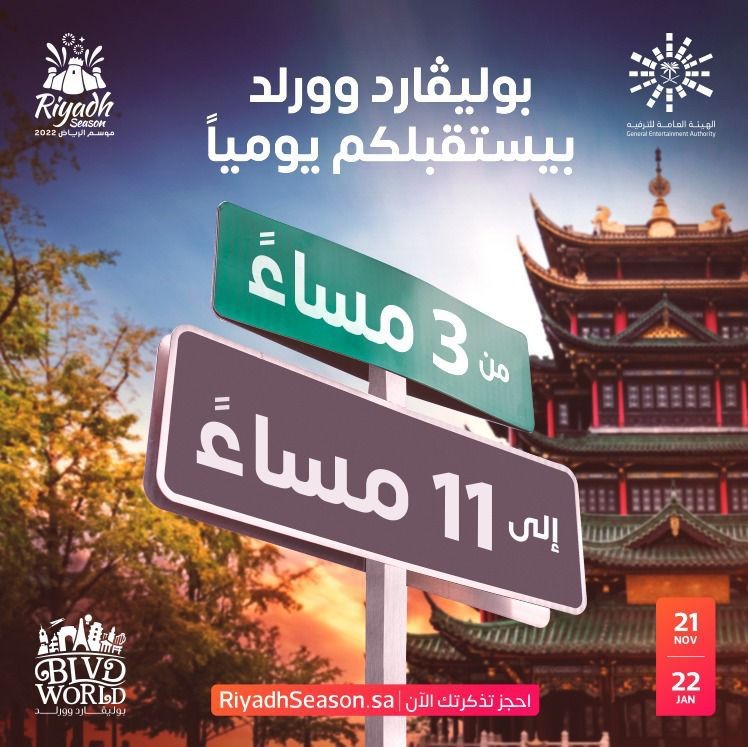 وتمثل منطقة بوليفارد وورلد أكبر مناطق موسم الرياض 2022، وتضم العديد من المناطق الترفيهية التي جمعت ثقافات العالم في صورة مشوقة ومبتكرة من التصاميم اللافتة والمغامرات والألعاب، إضافة إلى المطاعم والمقاهي والعديد من الفعاليات الترفيهية.