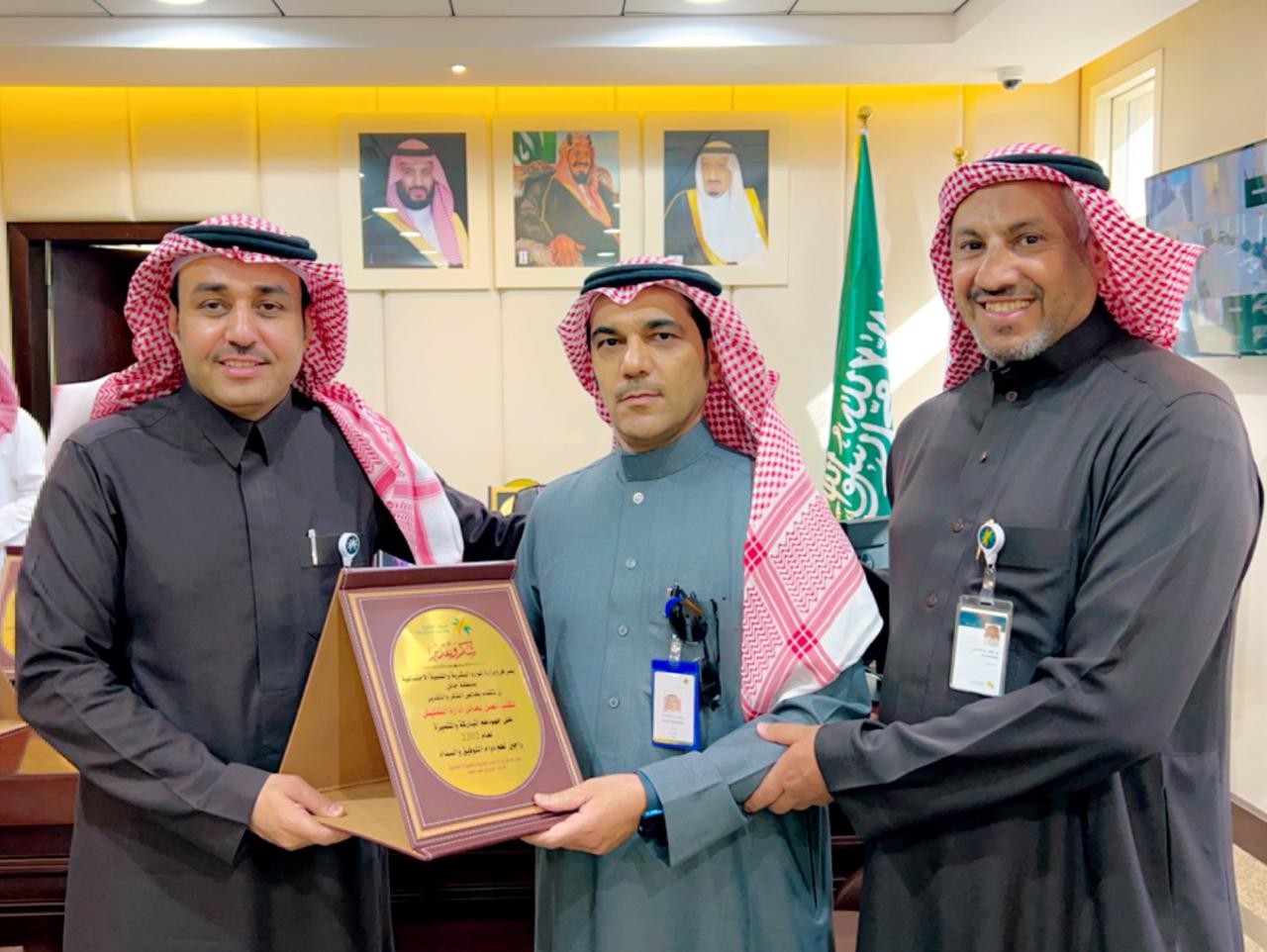 حيث تم تكريم مكتب العمل ممثلاً بمدير إدارة التفتيش الأستاذ سعود دبي الشمري على أدائهم المتميز في الجولات الرقابية المساهمة في متابعة الالتزام الأنشطة بقرارات التوطين و نشر الوعي وتبصير المنشآت بكافة الأنظمة .