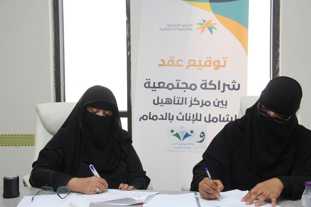 وقد وقع المذكرة من جانب تأهيل الإناث بالدمام مسؤولة التأهيل المهني "نعيمة الخالدي" نيابة عن مديرة المركز "عائشة المزيد"، فيما وقع من جانب شركة المناهج المطورة للتدريب والخدمات الاجتماعية مديرة الشركة الدكتورة "فوزية شاهين".