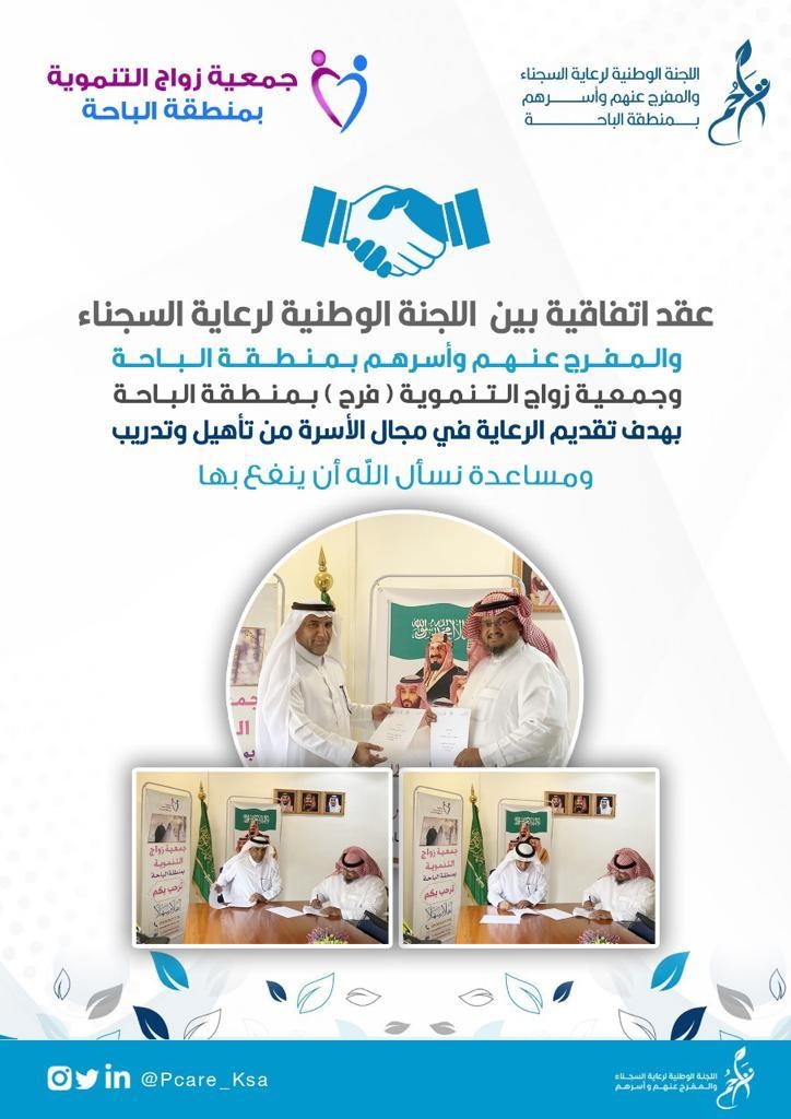 وقعت اللجنة الوطنية لرعاية السجناء والمفرج عنهم " تراحم منطقة الباحة " اتفاقية تعاون مع جمعية زراج التنموية بالباحة اليوم ، بمقر الجمعية .