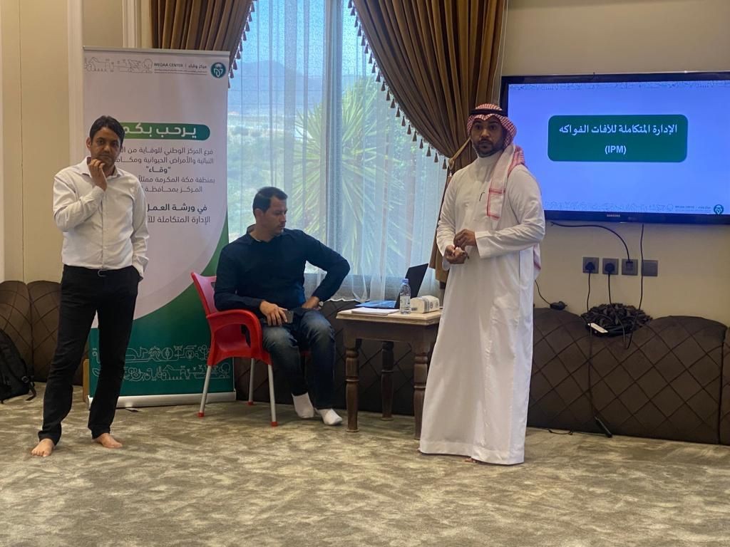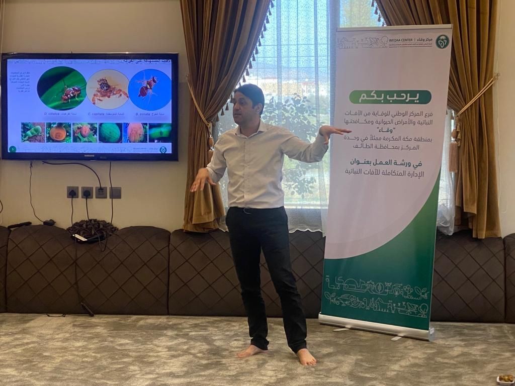 نظم المركز الوطني للوقاية من الآفات النباتية والأمراض الحيوانية ومكافحتها " وقاء " بمحافظة الطائف ورشة عمل تحت عنوان الإدارة المتكاملة للآفات النباتية بحضور عدد من المزارعين بالمحافظة.
