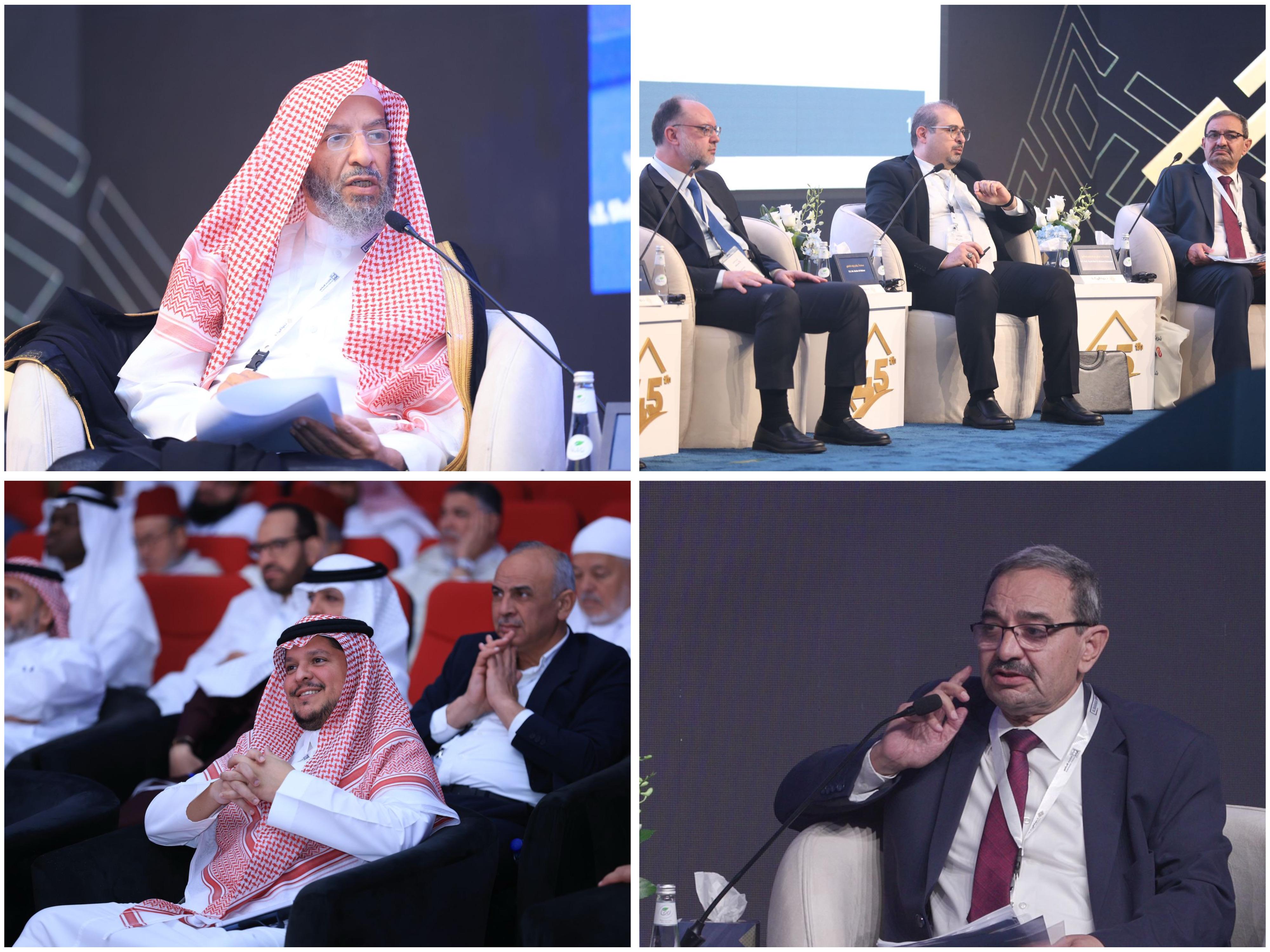 وبدأت الجلسة الأولى تحت عنوان "رحلة المصرفية الإسلامية: من البدايات إلى العالمية" بمشاركة عدد من الخبراء في الاقتصاد والشريعة الإسلامية، حيث ترأس الجلسة المستشار بالديوان الملكي وعضو هيئة كبار العلماء، معالي الدكتور سعد الشثري، أوضح في حديثه التحديات التي يواجهها العالم اليوم، وما يتم من عمليات نصب واحتيال، مؤكدًا الحاجة إلى تعريف الناس بالمصرفية الإسلامية لتوضيح كيف تتجنب هذه الأزمات سواء التي مرت أو التي تحدث اليوم. كما أشار إلى ثلاثة جوانب هامة للمصرفية الإسلامية: الجانب العلمي، والجانب العملي التطبيقي، والجانب الأخلاقي، مؤكدًا أن المصرفية الإسلامية تحظر الأخلاق الذميمة مثل الفساد والسرقة، وأن الاقتصاد والمصرفية الإسلامية يتصديان لذلك. وأوضح أن المصرفية الإسلامية ليست مجرد وسيلة لكسب المال، بل هي أداة ذات أثر تنموي رائع في مساعدة المحتاجين سواء من خلال تخفيف الفقر أو دعم المشاريع.