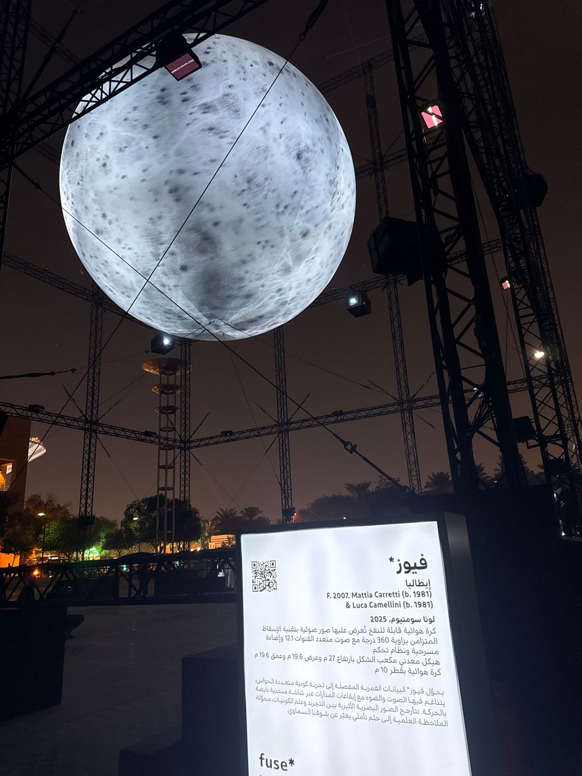 يحول "فيوز "البيانات القمرية المفضلة إلى تجربة كونية متعددة الحواس . يتناغم فيها الصوت والضوء مع إيقاعات المدرات عبر شاشة منحنية نابضة الملاحظة العلمية إلى حلم تأملي يعتبر عن شوقنا السماوي . الجدير بالذكر ، " فيوز " كورة هوائية قابلة للنفخ تُعرض عليها صور ضوئية بتقنية الإسقاط المتزامن بزاوية 360 درجة مع صوت متعدد القنوات 12.1 وإضاءة مسرحية ونظام تحكم . في المقابل ، يعتبر " فيوز " ضمن المجسمات و الأشكال المشاركة في فعالية نور الرياض التي انتهت امس السبت في منطقة مركز الملك عبد العزيز التاريخي . كما تعتبر فعالية نور الرياض اكبر احتفال للفنون الضوئية في العالم . احتضنتها العاصمة الرياض من ( 20 نوفمبر - 6 ديسمبر )