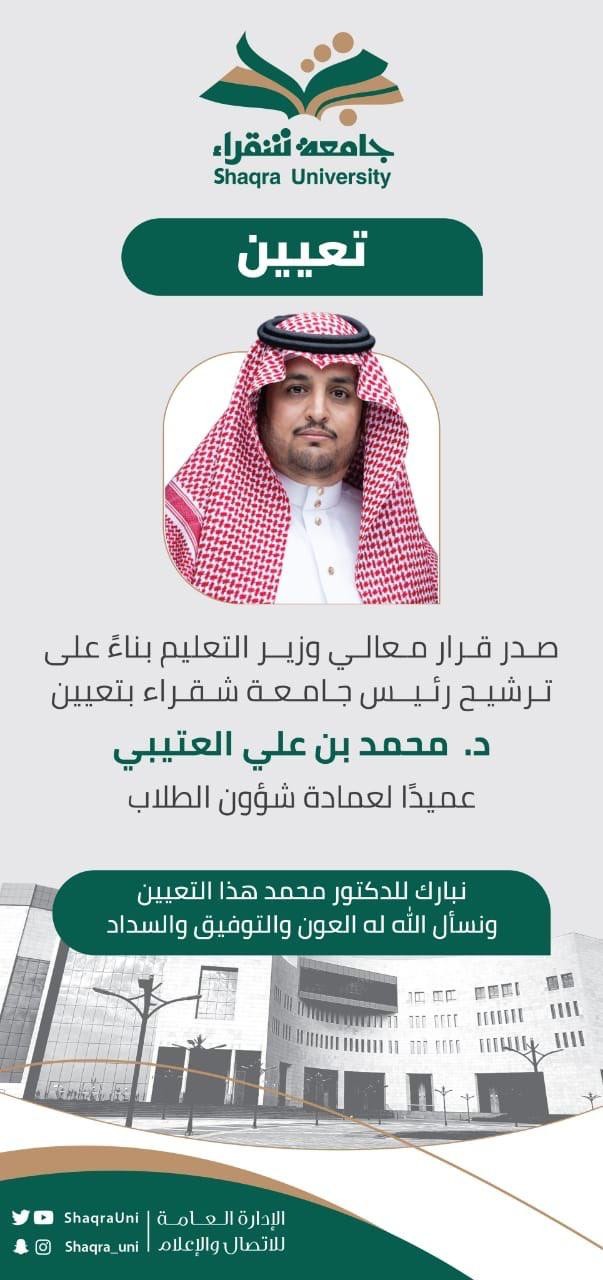 العتيبي عميد لشؤون الطلاب بجامعة شقراء