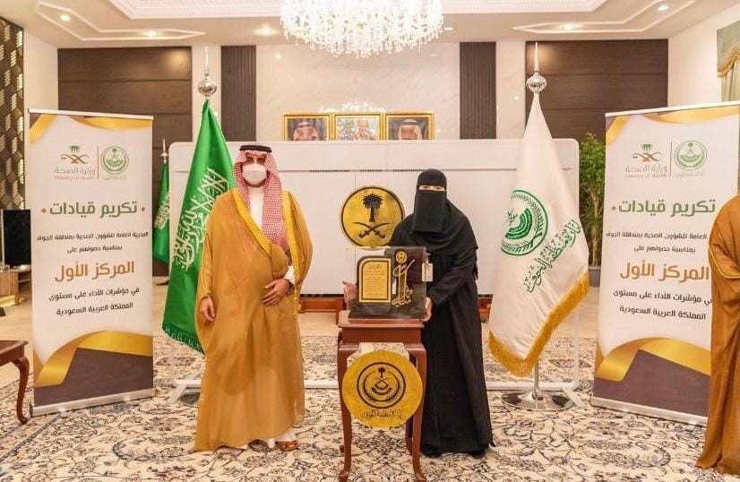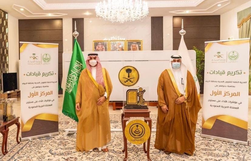 كرم صاحب السمو الملكي الأمير فيصل بن نواف بن عبدالعزيز أمير منطقة الجوف اليوم ، مدير عام الشؤون الصحية بالمنطقة فارس بن مخيلف الرويلي وعدداً من قياداتها، تقديراً لجهودهم وجميع منسوبي الصحة وحرصهم على استمرار تميز المنطقة وحصولها على مراكز متقدمة على مستوى المملكة، إثر صدور تقرير المركز الوطني الصحي للقيادة والتحكم والمتضمن تحقيق صحة الجوف النطاق الأخضر والمركز الأول على مستوى مناطق المملكة بمؤشرات الأداء التي تشتمل على جودة وسلامة المرضى، ورضا المستفيدين، والخدمات الصحية، والمؤشرات الإدارية، والمؤشرات الهندسية.