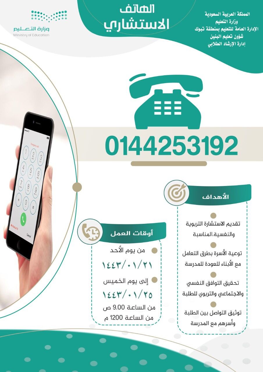 وقد وجه مدير تعليم تبوك إدارتي التوجيه والإرشاد الطلابي بوضع خطة لتهيئة طلاب الصف الأول ابتدائي بعد انتهاء فترة تعليمهم عن بعد في الفترة المحددة لذلك.