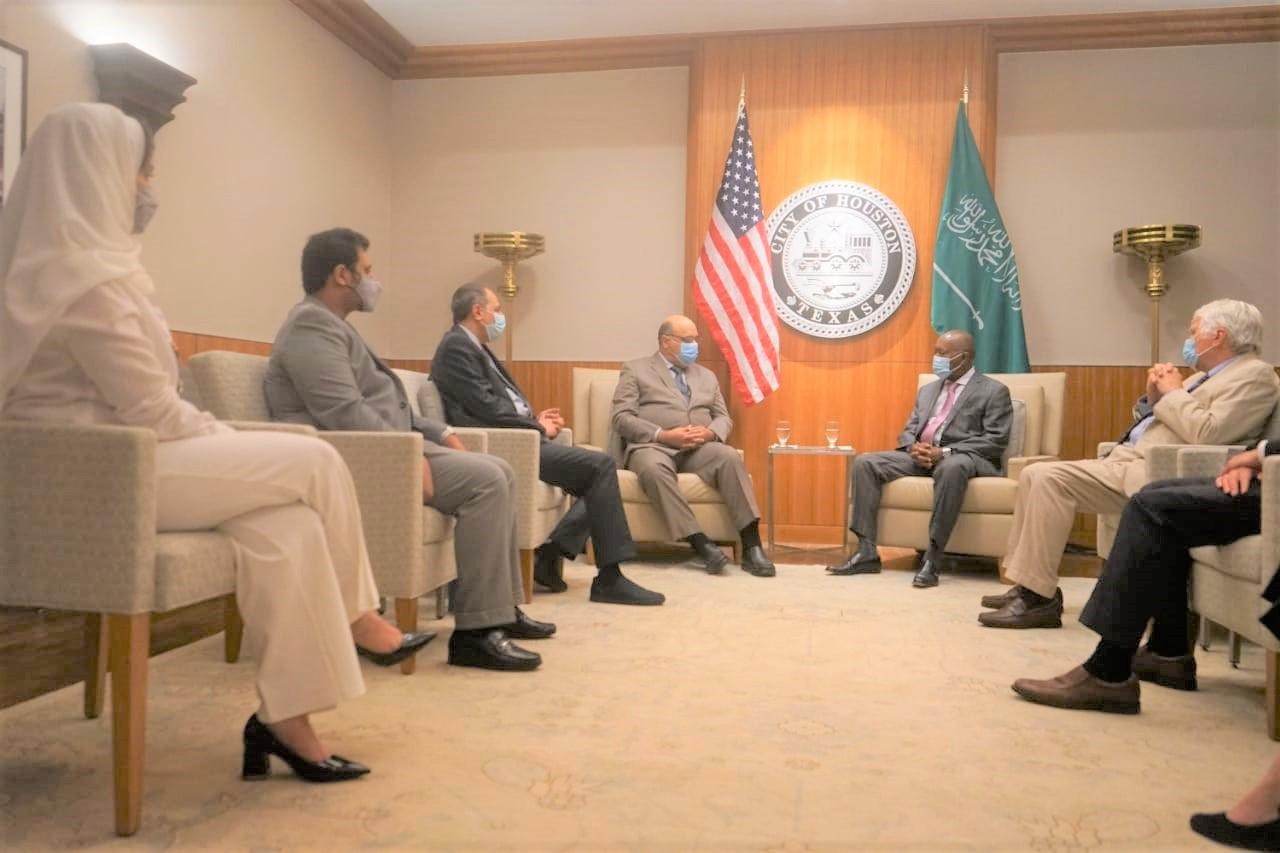 حيث شارك معاليه في ورش العمل والاجتماعات التي عقدت في هذا الملتقى، كما التقى معاليه خلال زيارته بعمدة هيوستن السيد سيلفستر تيرنير في مكتبه بمبنى بلدية مدينة هيوستن، واستعرض مع عمدة هيوستن عدد من التجارب التي تتعلق بتخطيط المدن، والمدن الذكية، وتوأمة المدن لاختيار المدن المميزة منها، وكذلك الاستفادة من هذه التجارب.