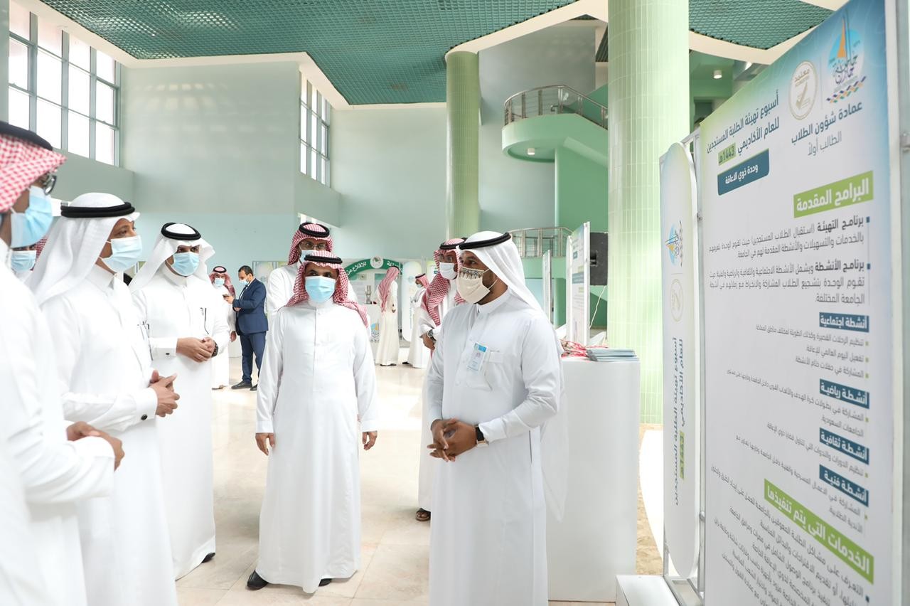 تزامن مع ذلك تدشين وكيلة الجامعة لشؤون الطالبات الدكتورة فاطمة عقيلي فعاليات المعرض التعريفي للطالبات المستجدات بمجمع محلية بحضور وكيلة عمادة شؤون الطلاب شطر الطالبات الدكتورة أشواق البكري.