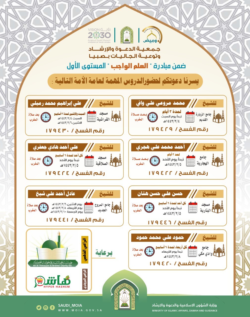 مبادرة العلم الواجب دروس جمعية الدعوة بصبيا