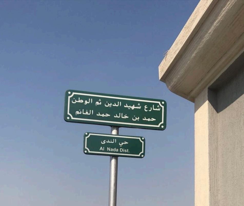 وأشار الجبير إلى أن اللوحة التي تم تضمين اسم الشهيد فيها، في "شارع شهيد الدين ثم الوطن" من ثم اسم الشهيد.