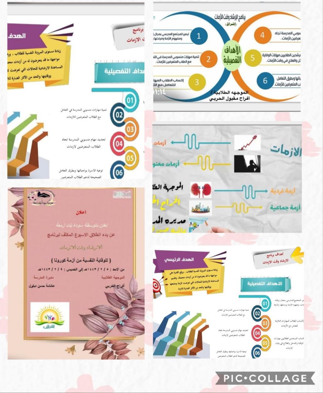هذا وقد قُدم البرنامج عبر إرسال إعلان للطالبات عن موعد البرنامج الذي تم من خلاله التحدث عن مفهوم الأزمة وأسبابها، وأنواعها، والعوامل المؤثرة في حدوث الأزمة وتوعية الأسرة بواجبها وطرق التعامل الصحيح.
