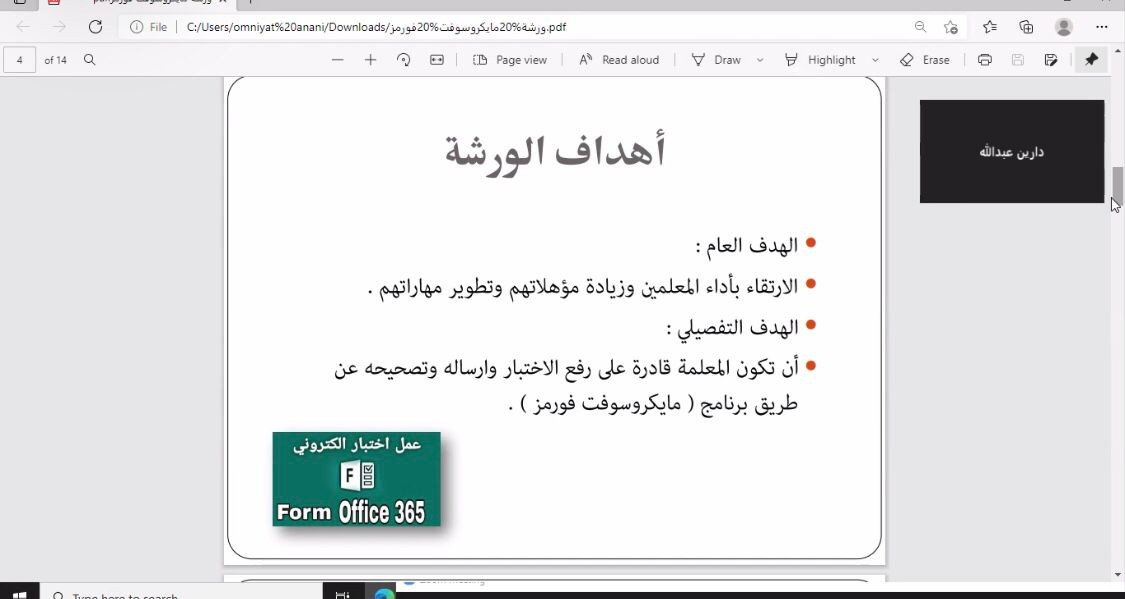 ورشةً تدريبيةً بعنوان (مايكروسوفت فورمز) نفذتها ابتدائية البتول الأهلية