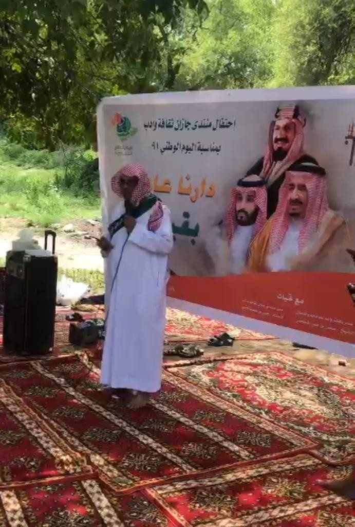 في اليوم الوطني اكتسى وادي رزان بمحافظة هروب بمنطقة جازان حلة من البهجة والسرور زاده القا وبهاء وجمالا، غنت فيه الطيور شجوا مع ساكنيه وتمايلت الأشجار طربا لوقع حداء وغناء المنتشين بعيد الوطن بعد أن أستحثتهم المناسبه ودعاهم العشق لوطن عز أنسانه وعلا بنيانه ،وطن احتوى آمالهم واشرق فيه مستقبلهم وتجسدت فيه أحلامهم وقد ابدع الصفوه من الشعراء المجيدين والمقدمين اللبقين والمتحدثين البارعين .في احاله سكون الوادي إلى منبر يشع ولاء ومحبه ووفاء وترنيما بعشق لا تفيه الكلمات ولاتجد مدى يتسع فيه للعبارات لوطن هو دارنا وفخرنا ومؤل مجدنا ولقيادة أسرت القلوب حبا وبنت مجدا ولقنت الأعداء درسا عشت ياوطني حصنا لكل مجد ودرعا لكل مسلم وسما زعافا لكل حاقد ومتأمر ، شكرا لك ياوطني أن أهديتنا حبك ونقشت ولاءنا لك على كل مناحي حياتنا واحلتنا إلى عشاق في بلاط وفائك فلقد منحتنا حياه كريمه نهلناها من طيب عطائك واورثتنا مستقبلا مشرقة من فيض عطائك شكرا لمنتدى جازان ثقافة ادب بكل رموزه العظماء الذين ابهرونا بشعرهم وفيض مشاعرهم بحب الوطن الغالي .