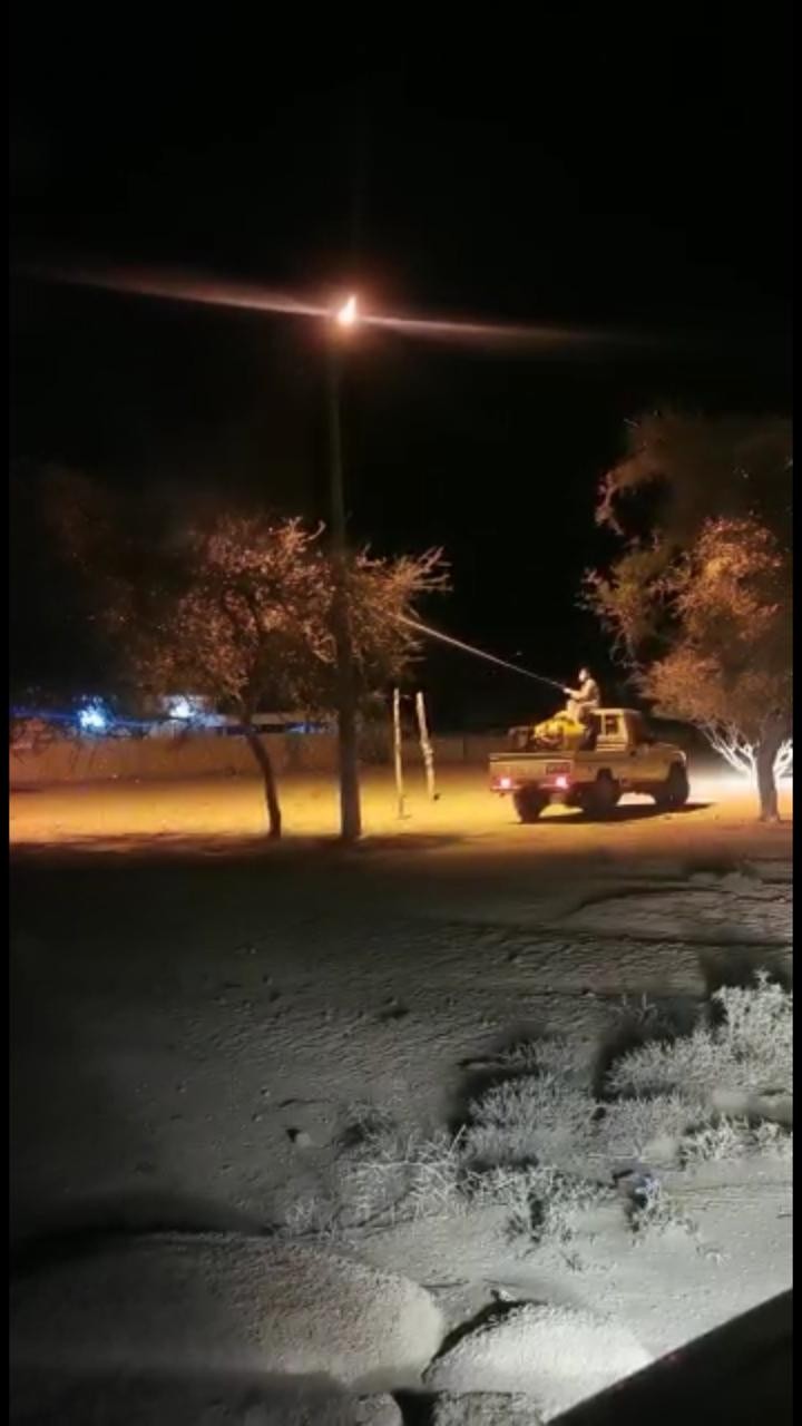 استمراراً لجهود وزارة البيئة والمياه والزراعة ممثلاً في فرع الوزارة بمنطقة عسير وبالتنسيق مع مركز مكافحة الجراد والآفات المهاجرة، باشرت فرق مكافحة الجراد الصحراوي مساء أمس إجراء أعمال المكافحة لسرب من الجراد الأحمر غير الناضج عالي الكثافة في الموقع المسمى شفان بوادي بن هشبل ، وذلك بعدد 13 فرقة مكافحة أرضية وقد بدأت أعمال المكافحة في تمام الساعة العاشرة ليلاً وأنتهت في تمام الساعة السادسة صباحاً وبفضل الله كانت نتائج المكافحة مرضية ونسبة الإبادة عالية.