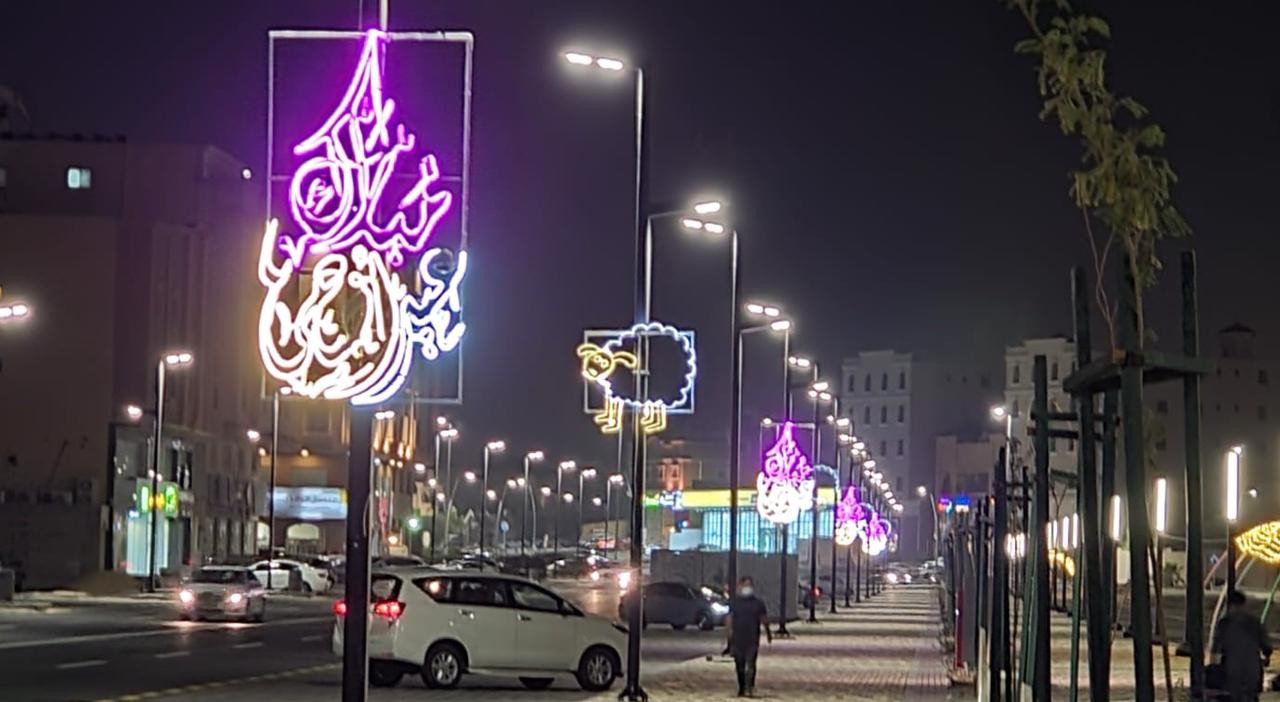 الشرقية تتزين بالإضاءات التجميلية وعبارات التهنئة بعيد الأضحى المبارك