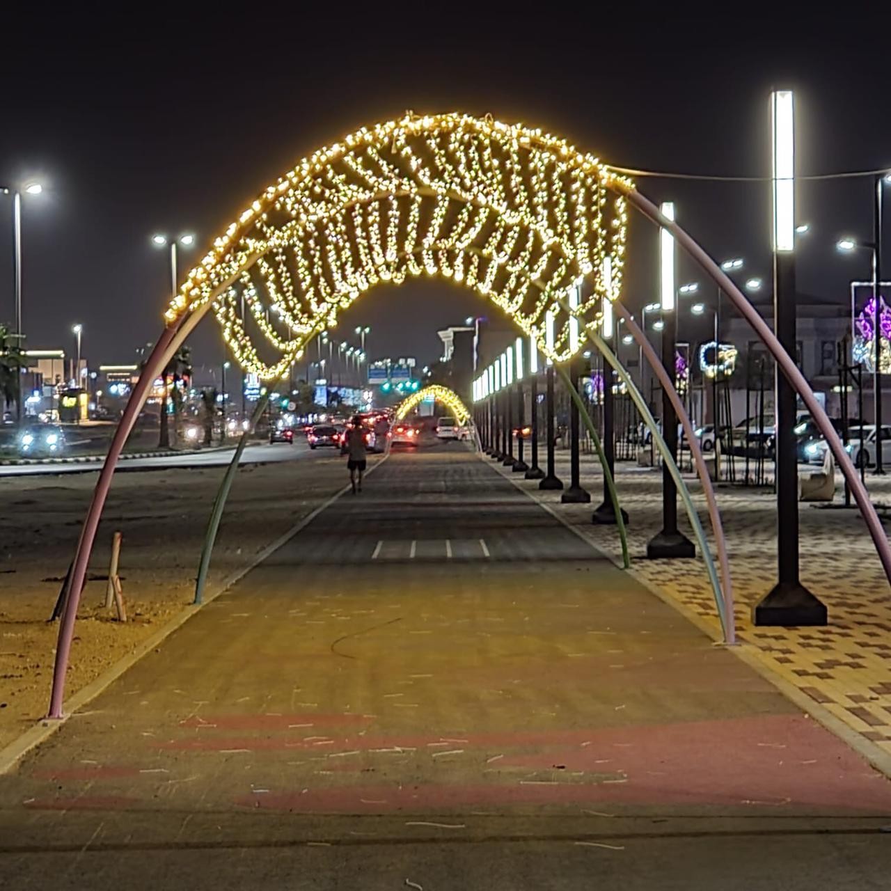 كما اشتملت الأعمال تركيب الزينة التي تحمل عبارات التهنئة بقدوم عيد الأضحى المبارك، وأعمال زينه وصور مجسمات، على طول الممشى، بالإضافة الى تركيب إضاءات تجميليه على الأقواس في بداية ومنتصف ونهاية الممشى.