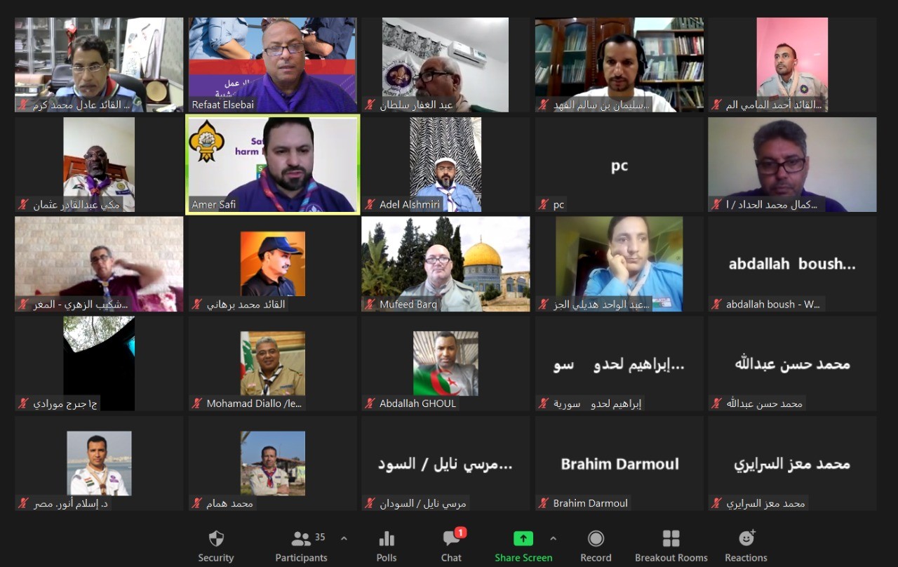 عقدت اللجنة المتخصصة المُشكلة للصياغة النهائية لقوائم عناوين موضوعات دراسات الشارة الخشبية الثلاثة بالإقليم الكشفي العربي التي تم تشكيلها خلال عقد الملتقى الافتراضي الكشفي العربي لمفوضي التدريب وتنمية القيادات مطلع يوليو الحالي اجتماعها الأول اليوم بمشاركة 33 قائداً كشفياً وقائدة يمثلون 16 جمعية كشفية عربية بحضور الأمين العام للمنظمة الكشفية العربية الاستاذ عمرو حمدي ، حيث تمت مناقشة ما توصلت اليه المجموعات التي تم تشكيلها لوضع الصياغة النهائية لكل من : ضوابط تنظيم دراسات الشارة الخشبية وشروط المشاركة فيها ، وقوائم عناوين موضوعات دراسات الشارة الخشبية الثلاثة ، وقوائم الكفاءات وفق المحاور الرئيسة الخمسة لدراسات الشارة الخشبية الثلاثة ، واستكمال إعداد البطاقات الفنية (المذكرات التربوية) لموضوعات محتوى دراسات الشارة الخشبية الثلاثة.