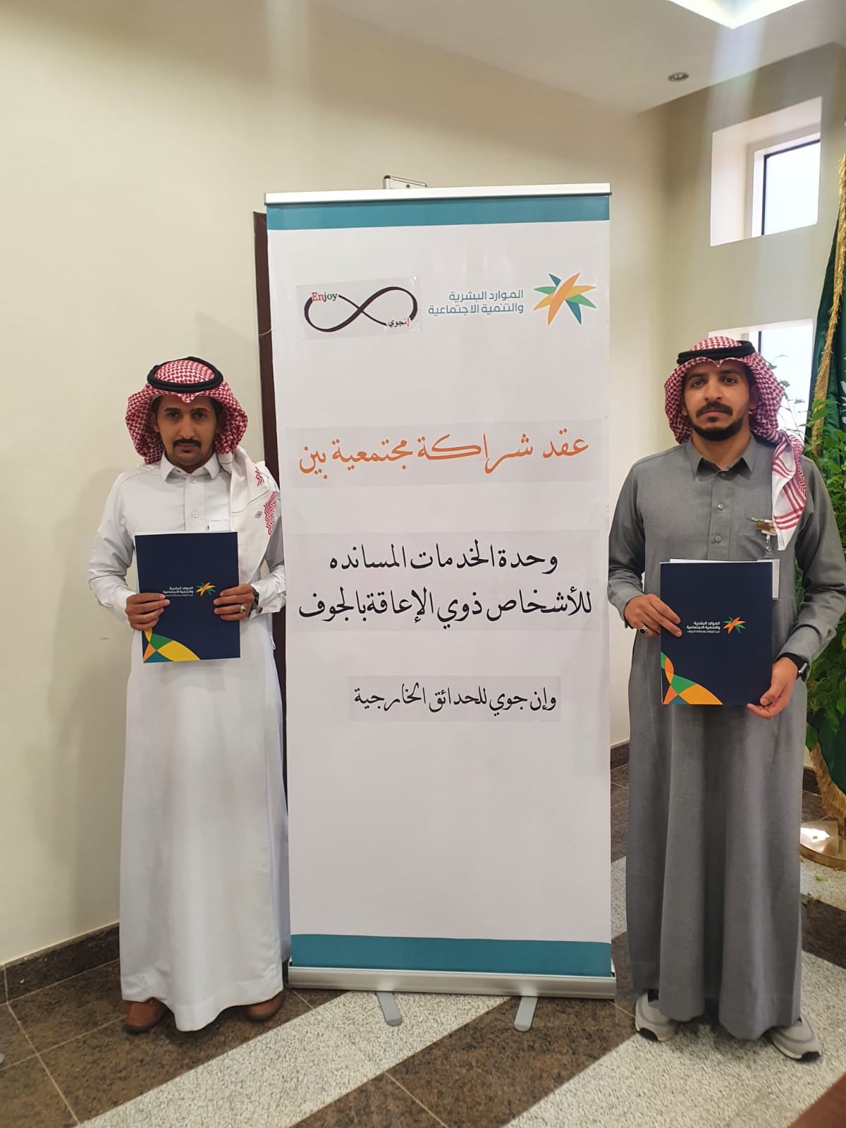 وقعت وحدة الخدمات المساندة للأشخاص ذوي الإعاقة بسكاكا ممثله برئيسة القسم النسائي الأستاذة/نشمية العنزي ثلاث إتفاقيات شراكة مع كل من مجمع المتخصص الدولي الطبي ومركز الصحه والقوام للعلاج الطبيعي ومؤسسة إن جوي للحدائق .