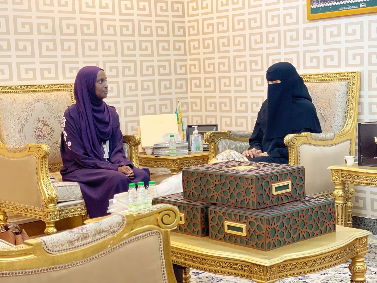 وحضر الاستقبال من الرئاسة العامة لشؤون المسجد الحرام والمسجد النبوي، وكيل الرئيس العام لتمكين المرأة الأستاذة مرام بنت عبدالكريم المعطاني ، و مديرة الإدارة العامة للآداب والشؤون التربوية الدكتورة عبير بنت محمد الجفير، و مديرة إدارة التشريفات الأستاذة سلوى الوذيناني، و مديرة مكتب مساعد الرئيس العام للشؤون التطويرية الأستاذة خلود بوصي، و سكرتيرة مكتب وكالة الشوون النسائية الأستاذة مي التويم.