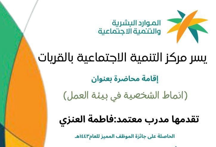 مركز التنمية الاجتماعيه بالقريات يقيم محاضرة بعنوان أنماط الشخصية في بيئة العمل