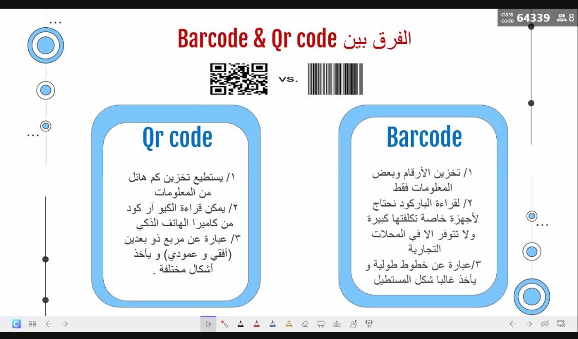 ختاما استكملت الورشة بالرد على جميع استفسارات المعلمات كما فتح المجال للمناقشة وكيفية استخدام الباركود في جميع أنشطة الدرس مع الطالبات.