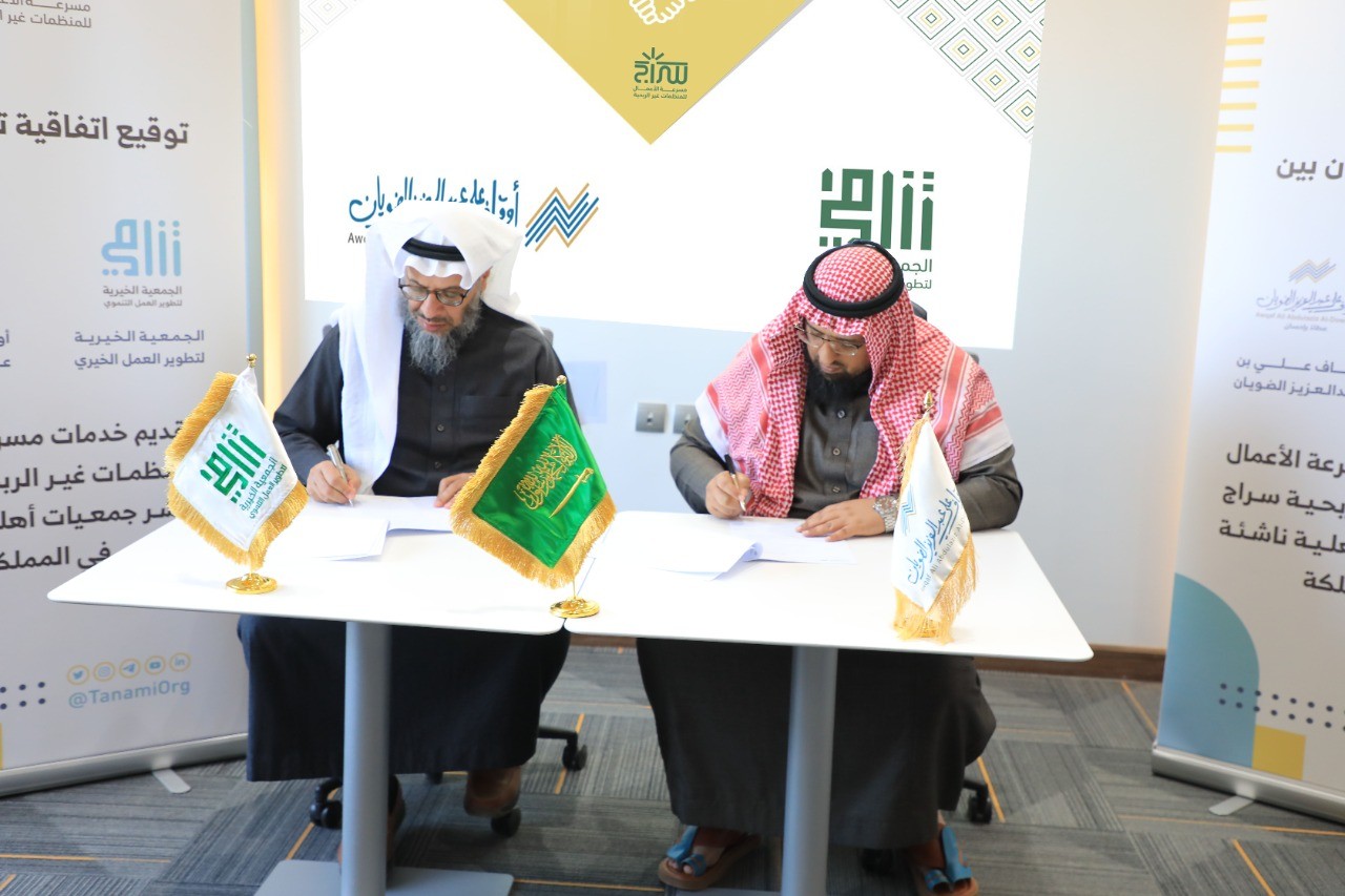 وقد مثل "تنامي" في توقيع العقد الأمين العام للجمعية خالد العواد ومثل أوقاف علي بن عبدالعزيز الضويان مديرها التنفيذي بندر القحطاني ومثل جمعية "بشر" مديرها التنفيذي عبدالعزيز بن خميس