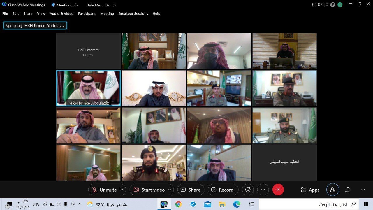 رأس صاحب السمو الملكي الأمير عبد العزيز بن سعد بن عبد العزيز أمير منطقة حائل رئيس اللجنة العليا للسلامة المرورية بالمنطقة اليوم -عن بعد- , الاجتماع الثاني للجنة، بحضور وكيل الإمارة عادل بن صالح آل الشيخ وأعضاء اللجنة من الجهات الحكومية ذات العلاقة بالسلامة المرورية.