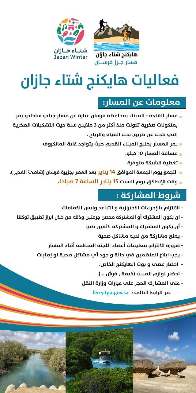 "هايكنج " جزيرة فرسان مسار جبلي ساحلي في شتاء جازان غدًا